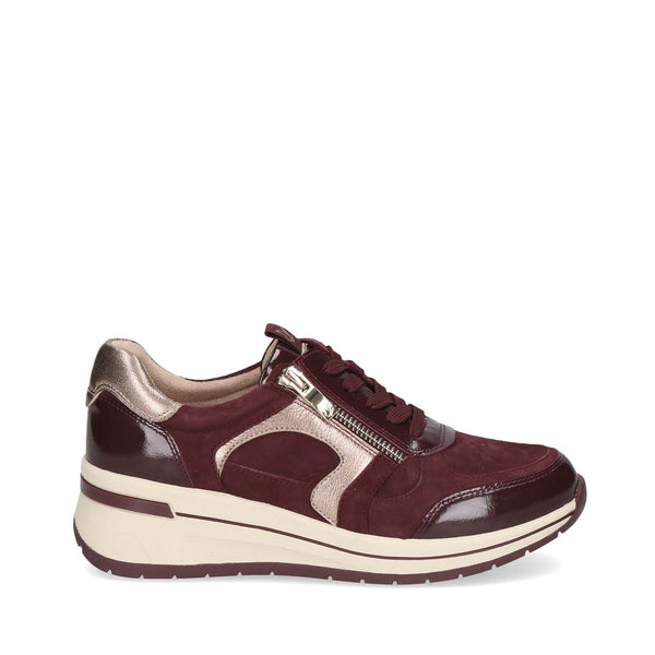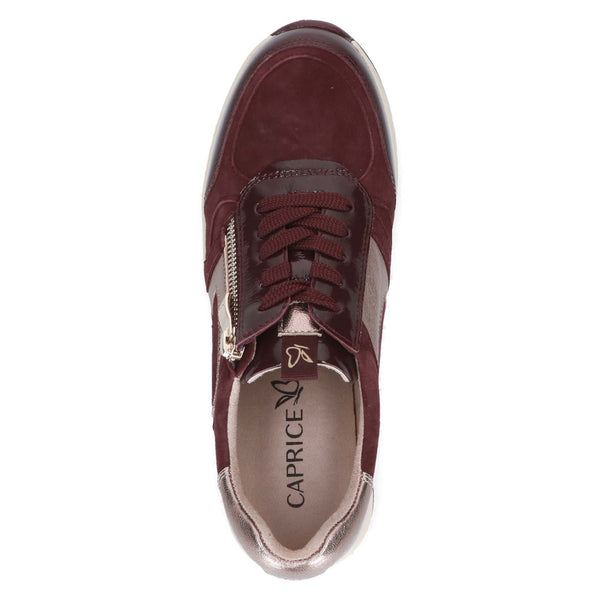 Fab trainer from Caprice in a suede & leather combination in bordeaux with a rose gold trim. Air-cushion insole.