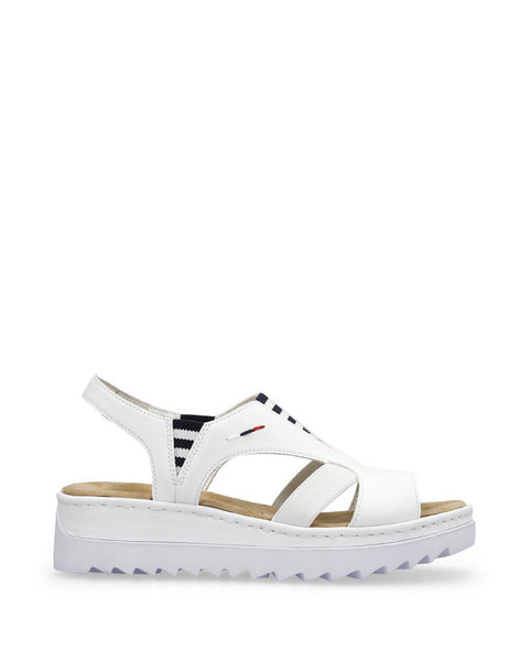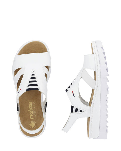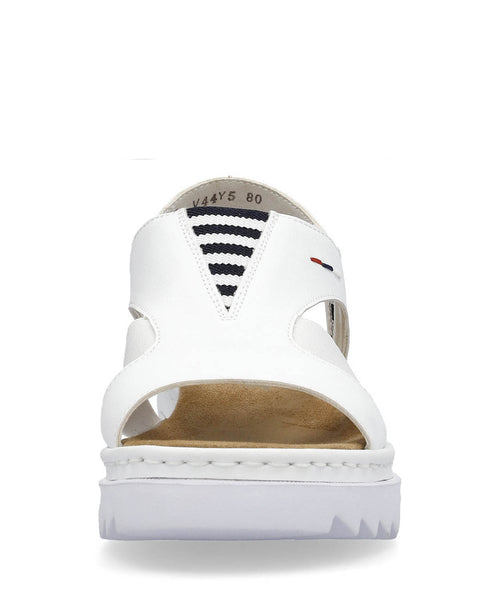 Lovely summer sandal from Rieker in a crisp white with a nautical trim.