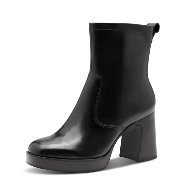 Beautiful platform ankle boot from Tamaris with a high block heel, platform sole & side zipper.