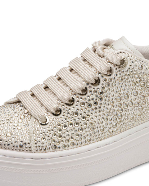 Fab flatform trainer from Tamaris in Champagne with a rhinestone detail & contrasting crisp white sole.