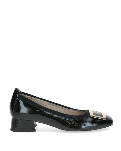 Beautiful court shoe from Caprice in a beautiful soft patent with a large buckle trim.