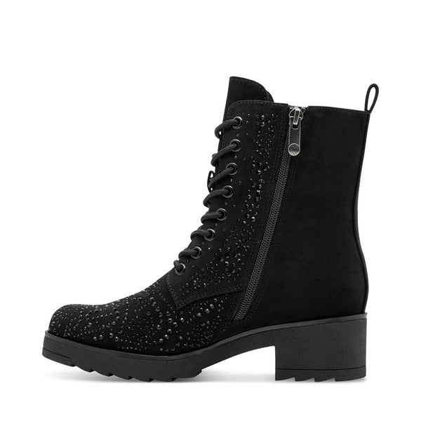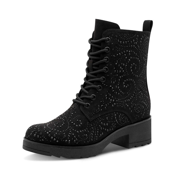Stunning laced ankle boot by Marco Tozzi with a beautiful jet swirl design, Side zipper for ease of wear.