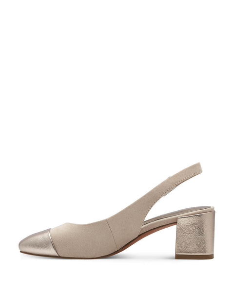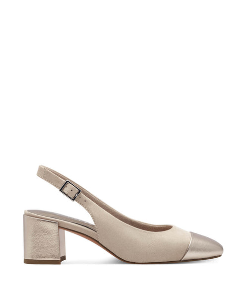 Gorgeous slingback from Marco Tozzi in a combination of beige & gold with a very wearable block heel.