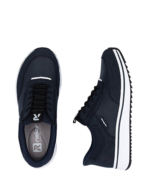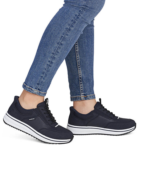 Lovely slip on trainer in navy from Rieker with elasticated laces.