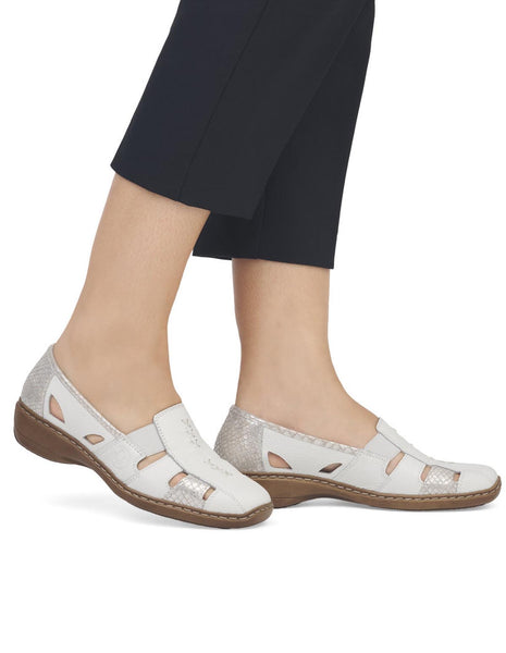 Lovely light weight summer shoe from Rieker with a cut out detail.