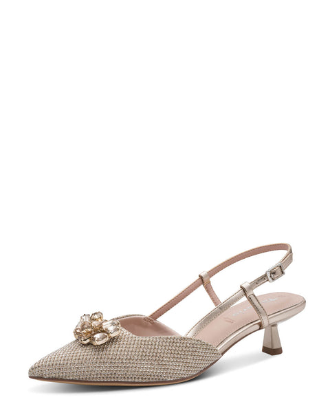 Beautiful slingback from Tamaris in a neutral sparkly textile with a stunning pearl trim & lovely kitten heel.