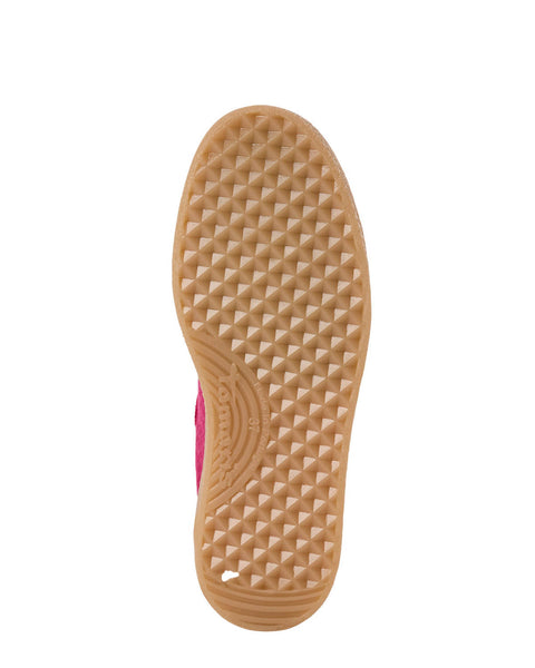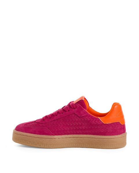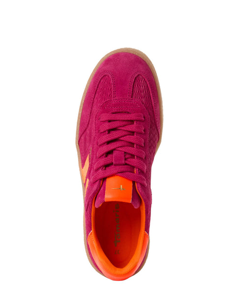 Beautiful suede trainer from Tamaris in pink with a neon orange trim & modern gum sole.
